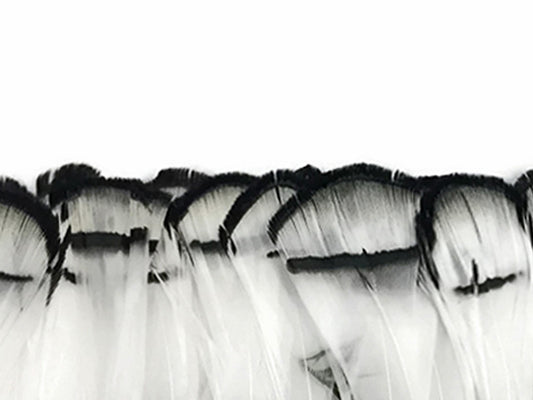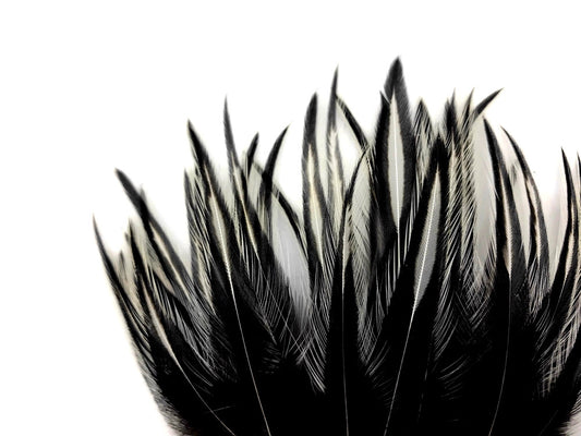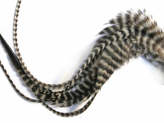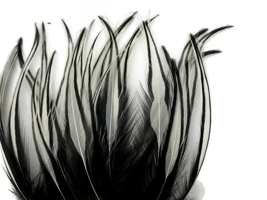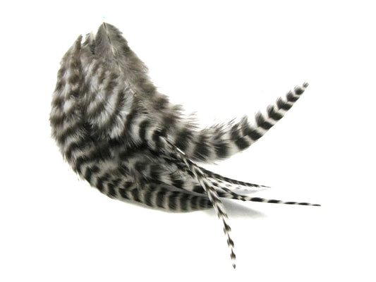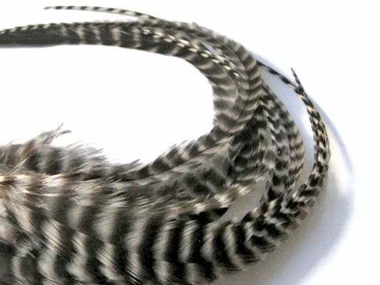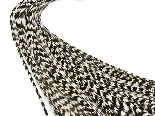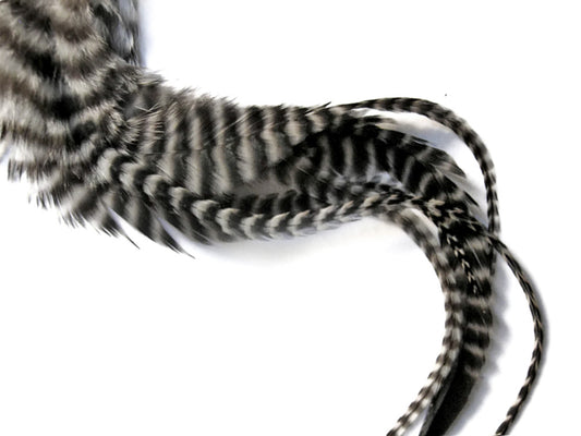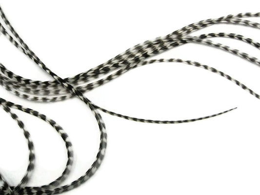10 Pieces - Natural Black & White Thin Long Grizzly Whiting Farm Rooster Hair Extension Feathers