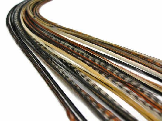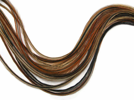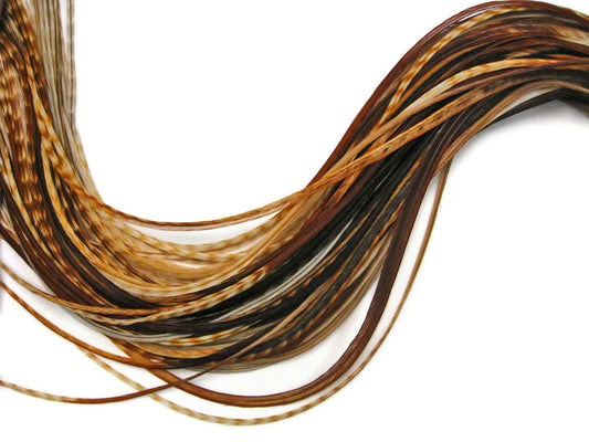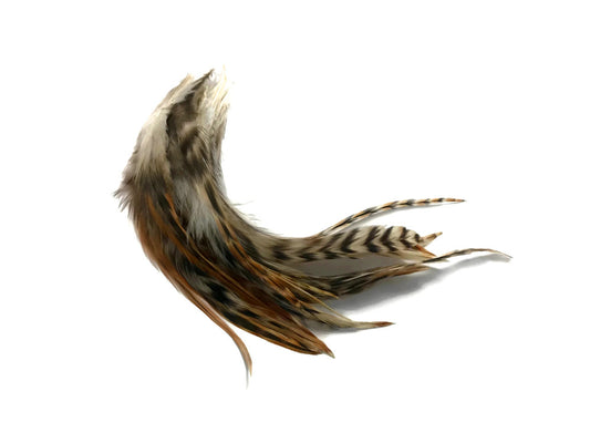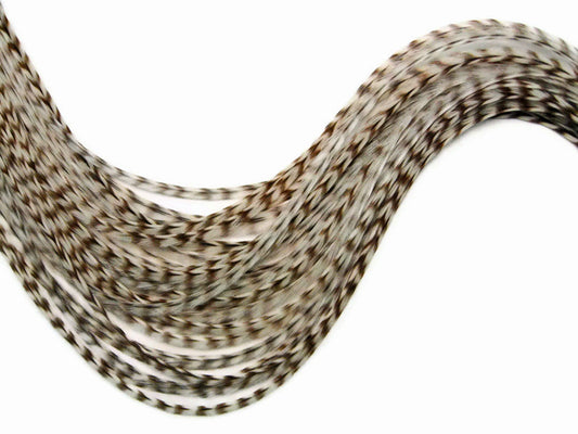 10 Pieces - Mocha Thin Long Grizzly Rooster Hair Extension Feathers