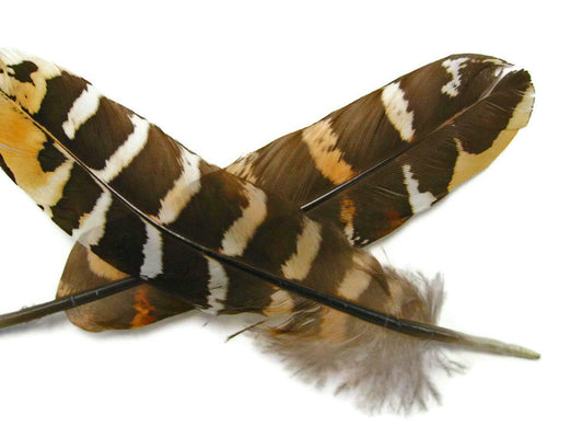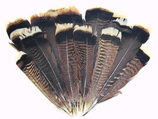 5 Pieces - Big Natural Brown Wild Barred Turkey Flat Tail Feathers