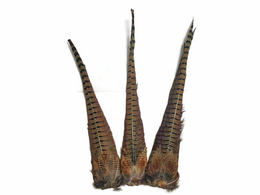 1 Tail - Natural Brown Complete Ringneck Pheasant Feather Tail Clump