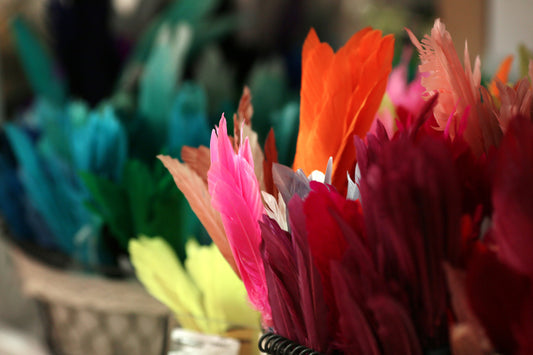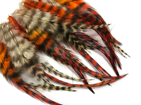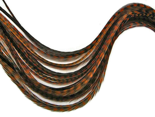 2 Dozen - Short Orange And Tan Grizzly Rooster Hair Extension Feathers