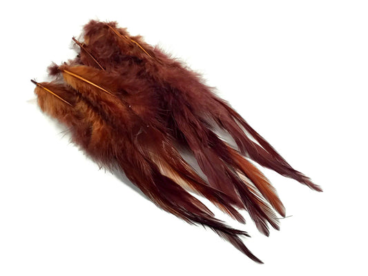 1 Dozen - Medium Solid Brown Rooster Saddle Whiting Hair Extension Feathers