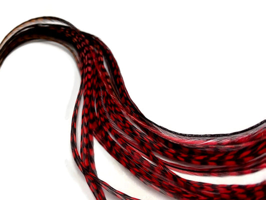 4 Inch Strip - 4-6" Natural Red Mix Strung Chinese Rooster Saddle Feathers