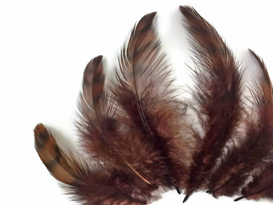 10 Pieces - Brown Dyed Grizzly Hen Saddle Feather