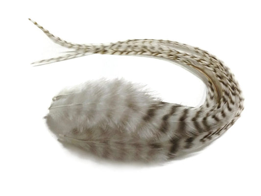 6 Pieces - XL Mocha Grizzly Thick Extra Long Rooster Hair Extension Feathers