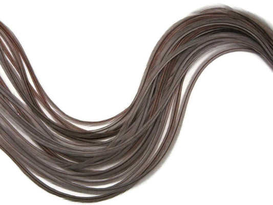 10 Pieces - Solid Brown Dun Thin Long Whiting Farm Rooster Saddle Hair Extension Feathers