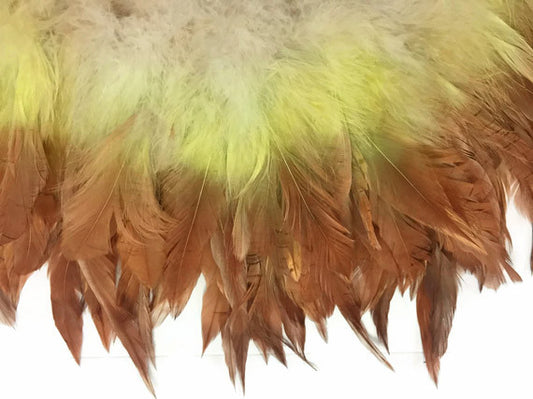 2 Inch Strip - Olive Brown Two Tone Bleached & Dyed Strung Rooster Schlappen Feathers