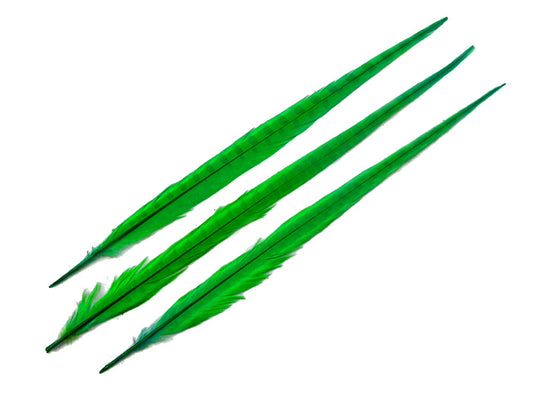 50 Pieces - 18-22" Bright Green Bleached & Dyed Long Ringneck Pheasant Tail Wholesale Feathers (Bulk)
