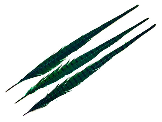 50 Pieces - 18-22" Peacock Green Dyed Over Natural Long Ringneck Pheasant Tail Wholesale Feathers (Bulk)