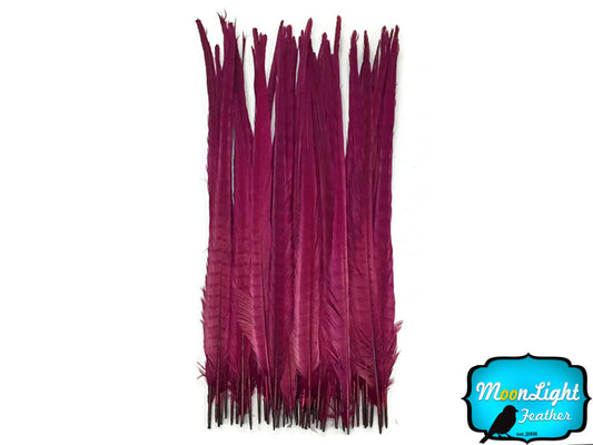 50 Pieces - 18-22" Red Wine Dyed Over Natural Long Ringneck Pheasant Tail Wholesale Feathers (Bulk)