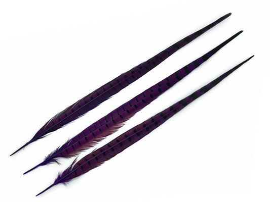 50 Pieces - 18-22" Purple Dyed Over Natural Long Ringneck Pheasant Tail Wholesale Feathers (Bulk)