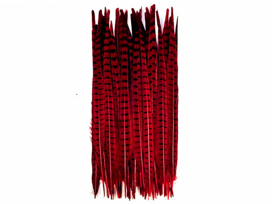 50 Pieces - 18-22" Red Bleached & Dyed Long Ringneck Pheasant Tail Wholesale Feathers (Bulk)