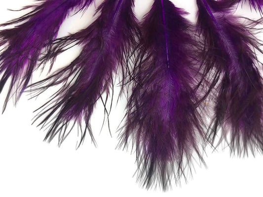 1 Dozen - Solid Purple & Black Mini Rooster Chickabou Fluff Whiting Hair Feathers