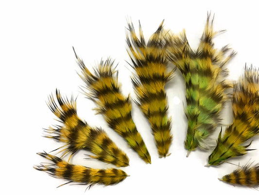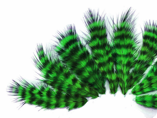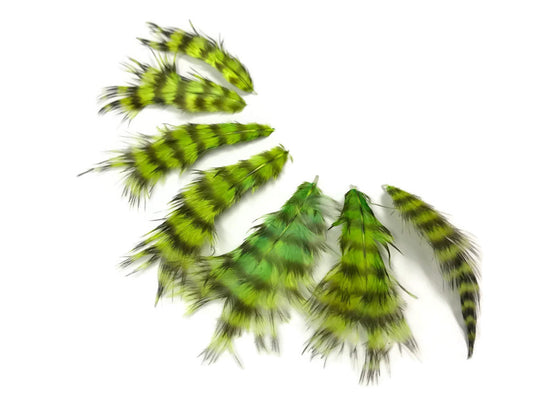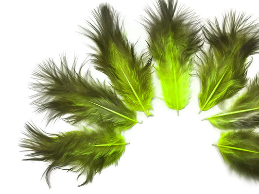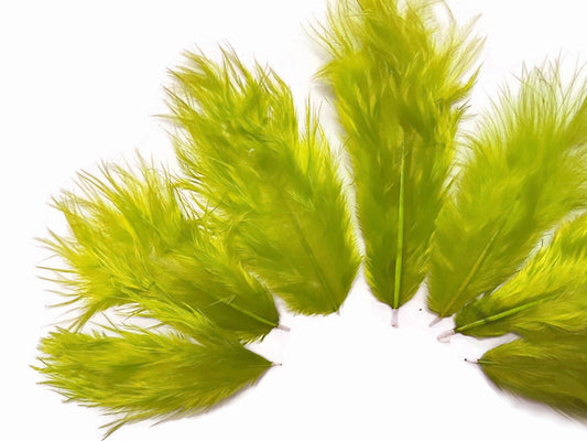 1 Dozen - Lime Green Grizzly Mini Rooster Chickabou Fluff Whiting Hair Feathers