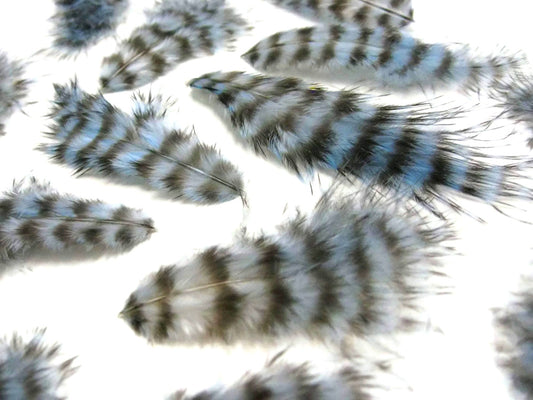 Discover the creative versatility of our Whiting Farms Mini Chickabou feathers, perfect for jewelry making, decorating, and fly tying. Measuring approximately 1–2 inches long, these delicate feathers are ideal for adding soft texture and dimension to your designs. Featuring distinctive Grizzly Fluff patterning with bold black stripes, they provide striking visual detail in a compact size. Though small, these rooster chickabou feathers are excellent for layering and creating fluffy, eye-catching accents. Add depth, movement, and professional-quality detail to your projects with these premium Whiting Farms feathers.