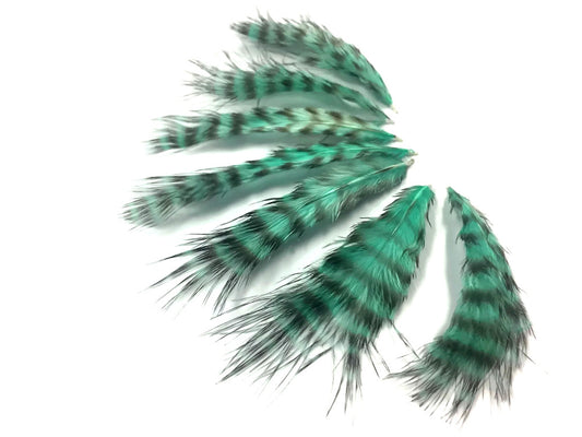 1 Dozen - Mint Green Grizzly Mini Rooster Chickabou Fluff Whiting Hair Feathers
