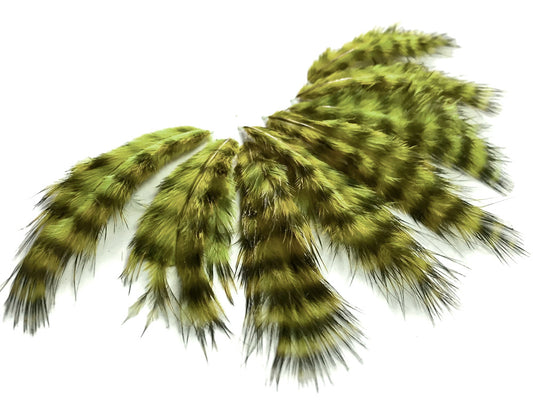 1 Dozen - Olive Green Grizzly Mini Rooster Chickabou Fluff Whiting Hair Feathers
