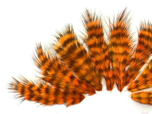1 Dozen - Orange Grizzly Mini Rooster Chickabou Fluff Whiting Hair Feathers