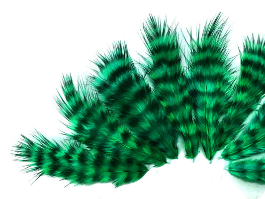 1 Dozen - Kelly Green Grizzly Mini Rooster Chickabou Fluff Whiting Hair Feathers