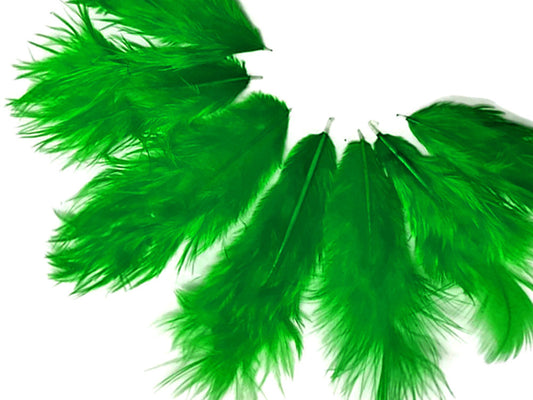 1 Dozen - Solid Kelly Green Mini Rooster Chickabou Fluff Whiting Hair Feathers