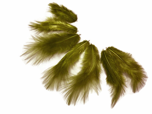 1 Dozen - Solid Olive Mini Rooster Chickabou Fluff Whiting Hair Feathers