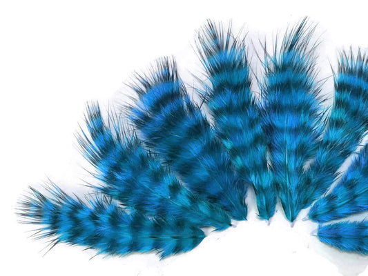 1 Dozen - Turquoise Blue Grizzly Mini Rooster Chickabou Fluff Whiting Hair Feathers