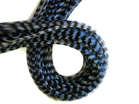 2 Dozen - Short Blue Mix Grizzly Rooster Hair Extension Feathers