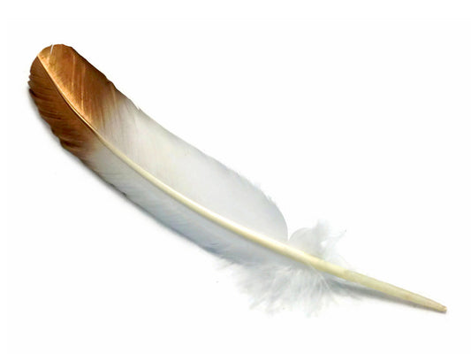 6 Pieces - Gold Tipped Metallic Spray Painted White "Imitation Eagle" Turkey Tom Rounds Secondary Wing Quill Feathers