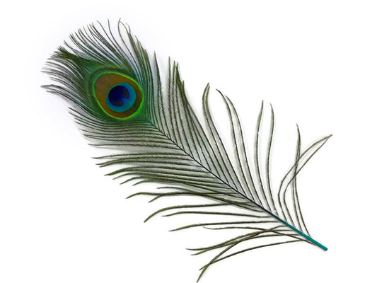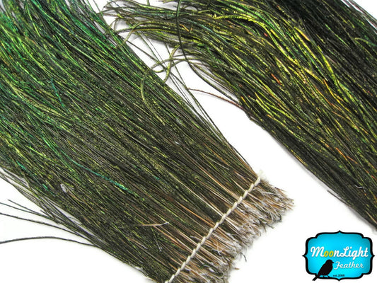 1/2 Yard - 5-7" Natural Iridescent Green Peacock Flue / Herl Strung Wholesale Feathers (Bulk)