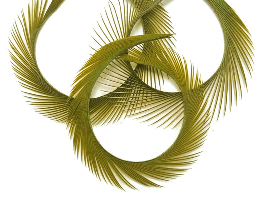 1 Yard - Olive Green Goose Biots Stripped Wing Wholesale Feather Trim
