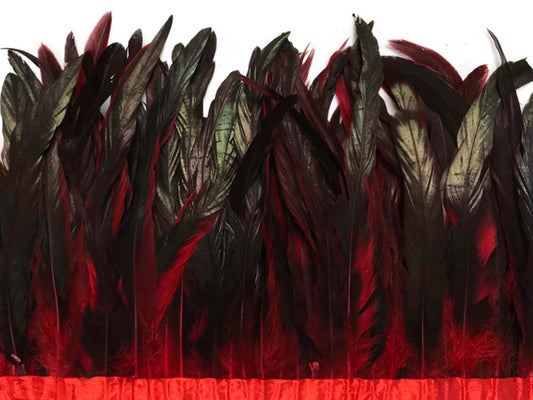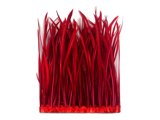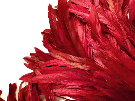 1 Yard - 10-12" Red Dyed Over Natural Coque Tails Long Feather Trim (Bulk)