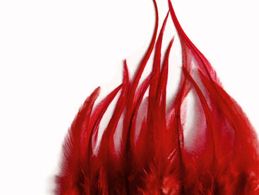 10 Pieces - Red Thin Long Grizzly Rooster Hair Extension Feathers
