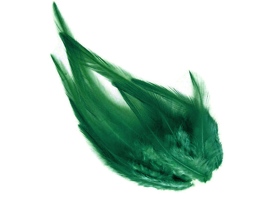 1 Dozen - Short Solid Peacock Green Whiting Farm Rooster Saddle Hair Extension Feathers