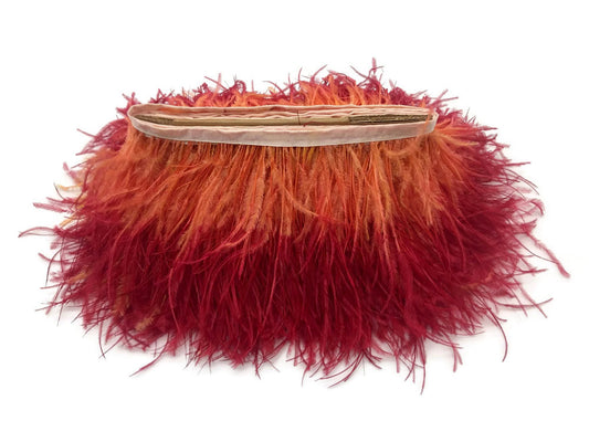 6 Inch Strip - Sunset Orange Ombre Ostrich Fringe Trim Feather