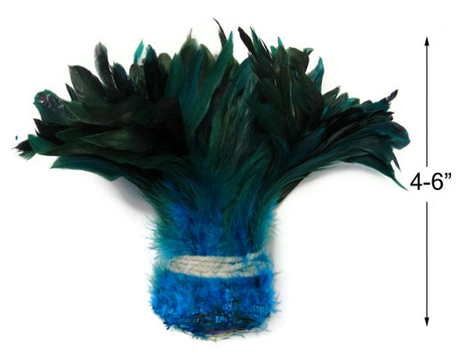 4 Inch Strip - Turquoise Blue Dyed Half Bronze Strung Rooster Schlappen Feathers
