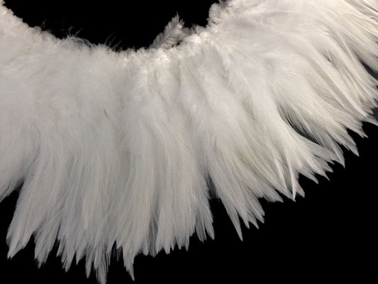 4 Inch Strip – 6-7” Natural White Strung Chinese Rooster Saddle Feathers