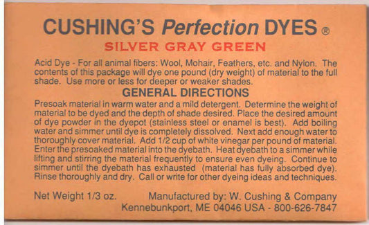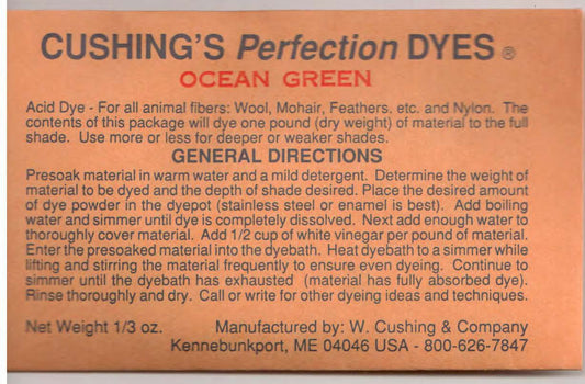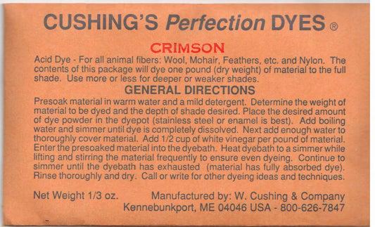 For many years Cushing’s Perfection Dye was a “union” type dye, designed to be suitable for a variety of plant, animal and synthetic fibers. In response to the changing availability of raw materials and to increase the effectiveness and ease of use of our dyes, we reformulated them into two types, acid and direct.