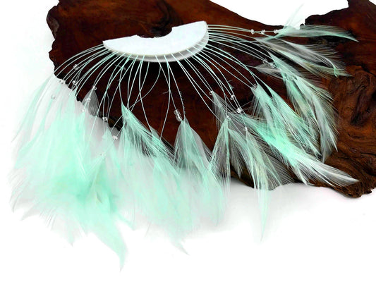 1 Piece - Aqua Half Beaded Pinwheel Stripped Rooster Hackle Feather Pads