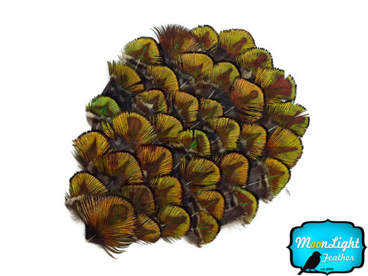 1 Piece - Green Gold Iridescent Peacock Plumage Handmade Feather Pad