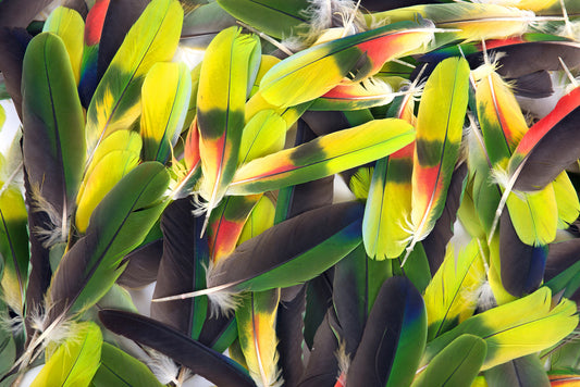 4 Pieces - Tri-Color Amazon Parrot Wing Feathers -Rare-