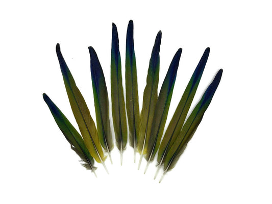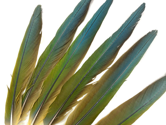 4 Pieces - Green & Yellow Mix Conure Tail Rare Feathers