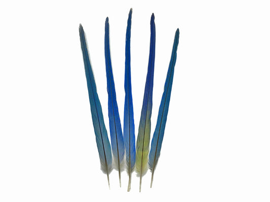 5 Pieces - Iridescent Blue Hyacinth Macaw Tail Feather Set - Rare-