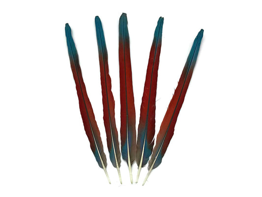 Complete Set of 5 - 20-22" Scarlet Red Macaw Tail Super Long Feather -Rare-