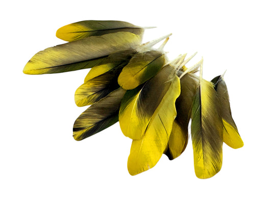 4 Pieces - Green & Yellow Conure Parrot Wing Feathers