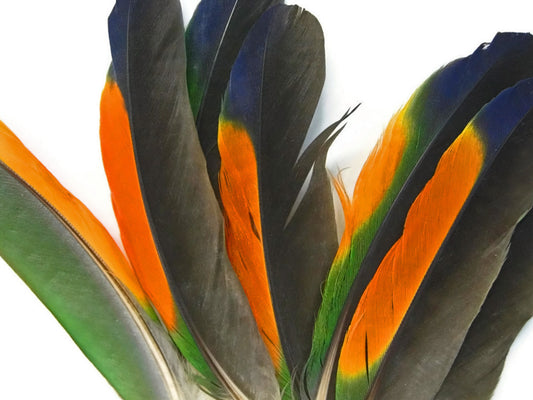 Set of 6 - 8-12" Natural Tri-Color Hybrid Parrot Tail Feathers Set - Rare