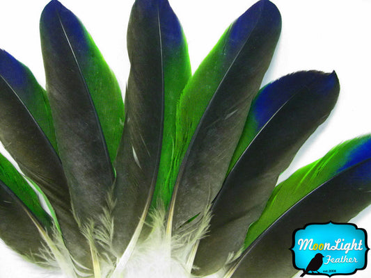 4 Pieces - Blue And Green Amazon Tiny Parrot Wing Feathers -Rare-