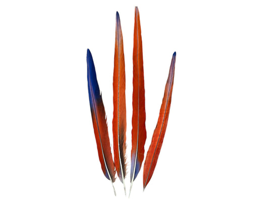 Set of 4 Tails Feathers - 18 - 24" Iridescent Scarlet Macaw Long Tail Feather Set - Rare-
