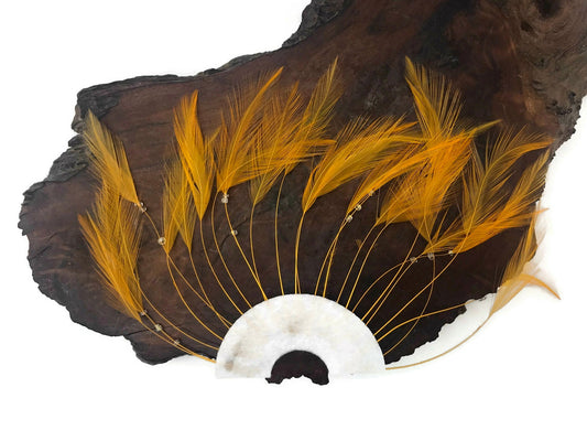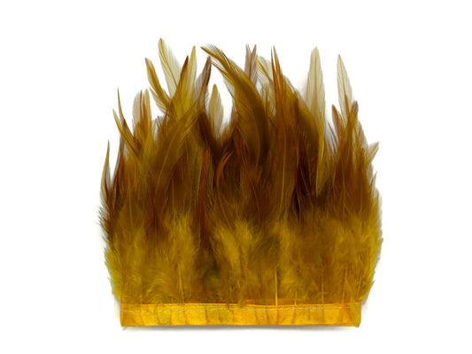 1 Yard - Dyed Golden Yellow Over Natural Rooster Neck Hackle Saddle Feather Wholesale Trim
