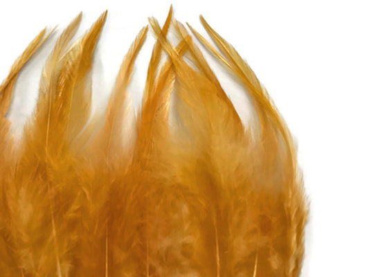 1 Dozen - Short Solid Antique Gold Whiting Farm Rooster Saddle Hair Extension Feathers