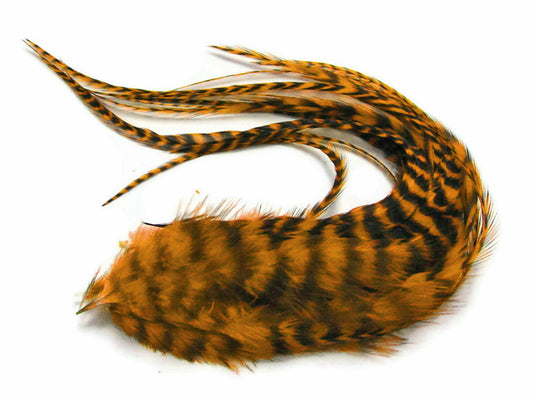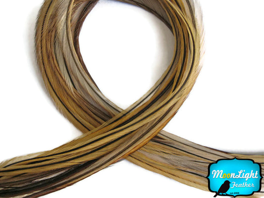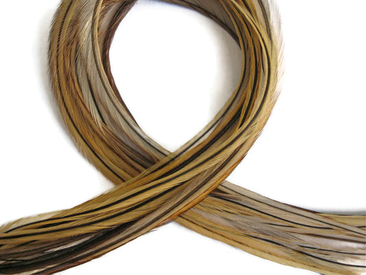 6 Pieces - XL Golden Badger Extra Long Thin Rooster Hair Extension Feathers